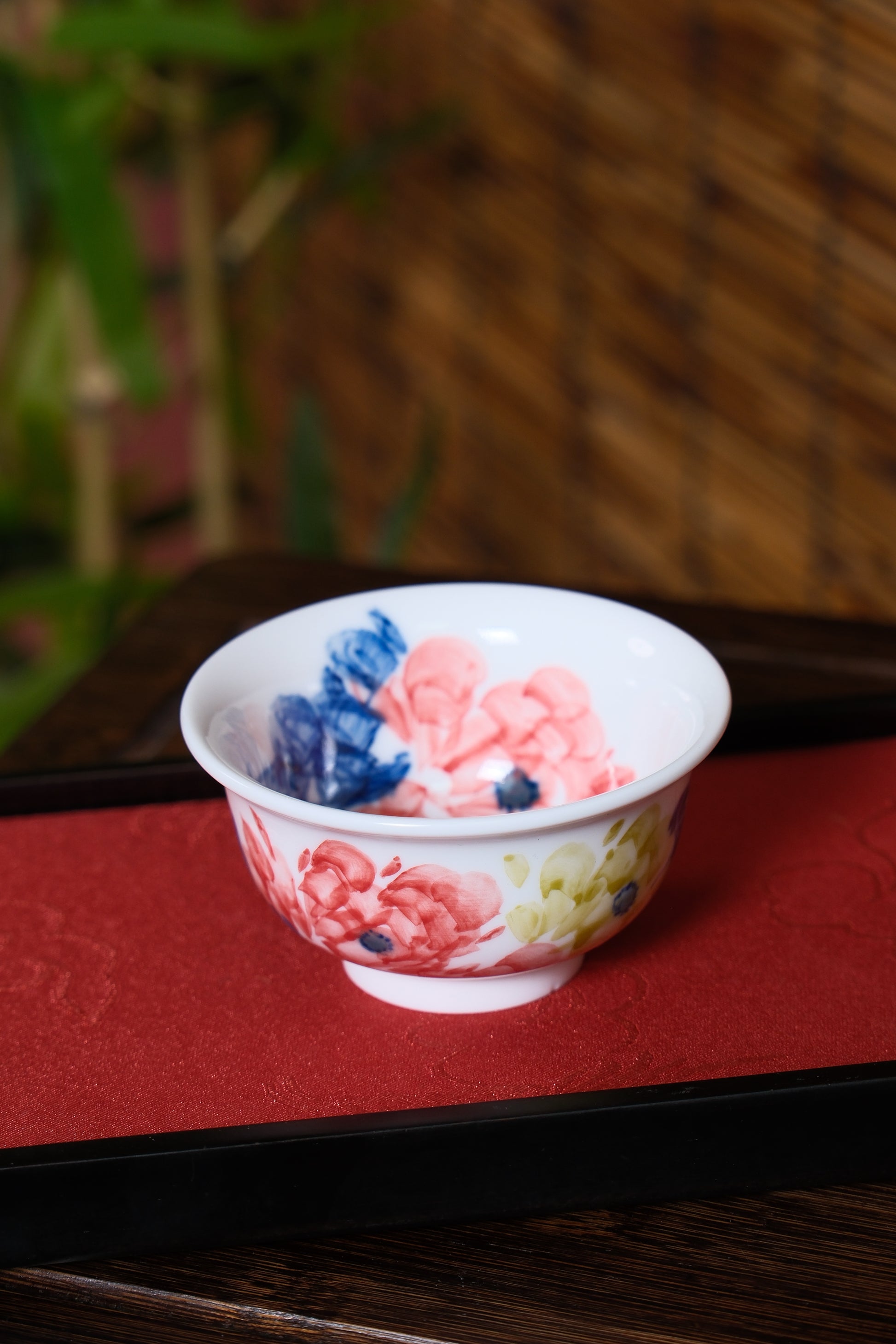 This blue and white peony cup is hand-painted by each artisan and took up to half a month to make, the overall color is especially bright.